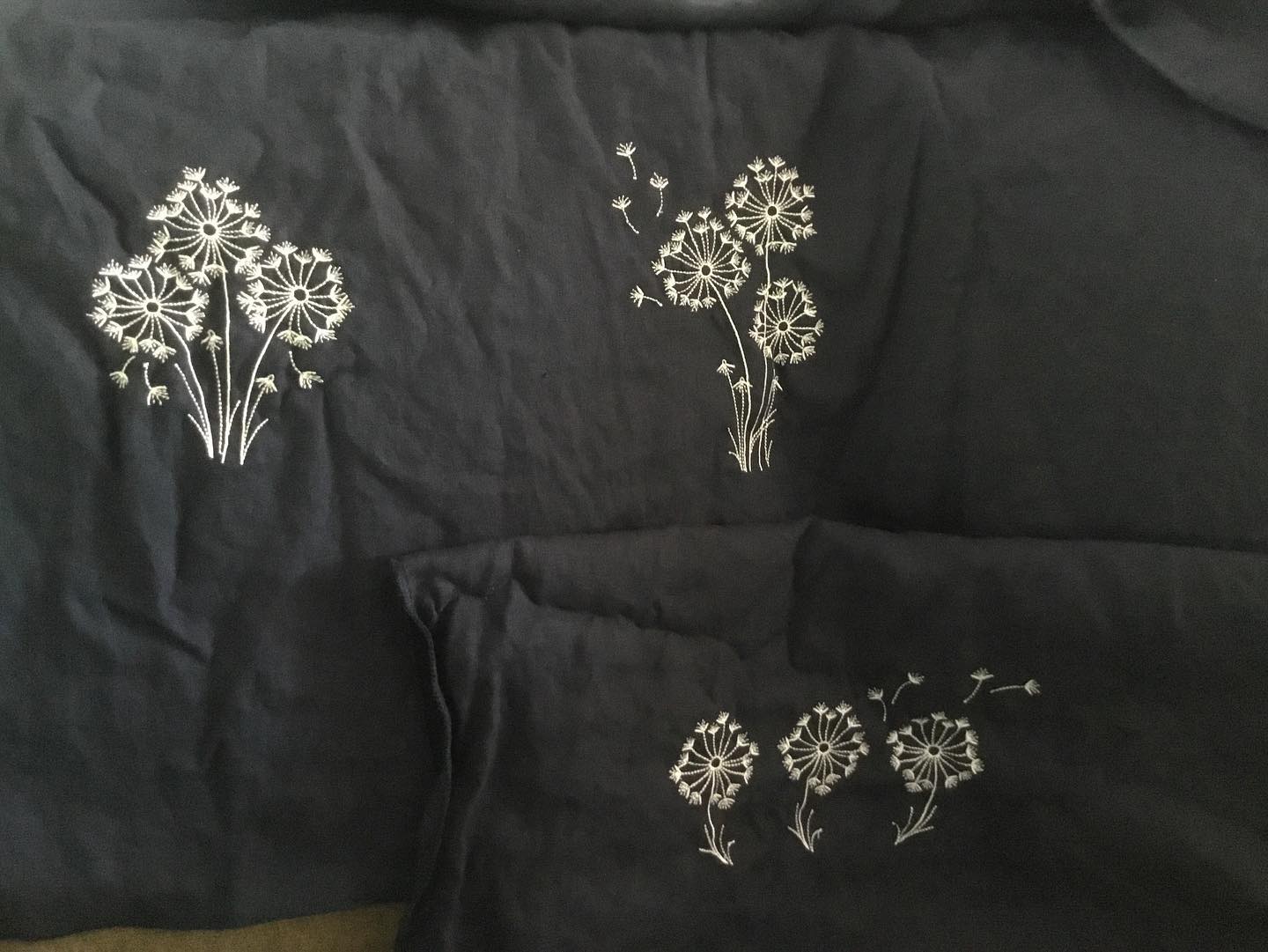 Phew, between summer fun, vacation, and Covid my sewing had slowed way down, but I am back. Testing a fantastic pattern which has lovely space for some embroidery. One of my favorite summer moments is when the Dandelions have gone to seed. Design by OESD collection, Natural Settings.