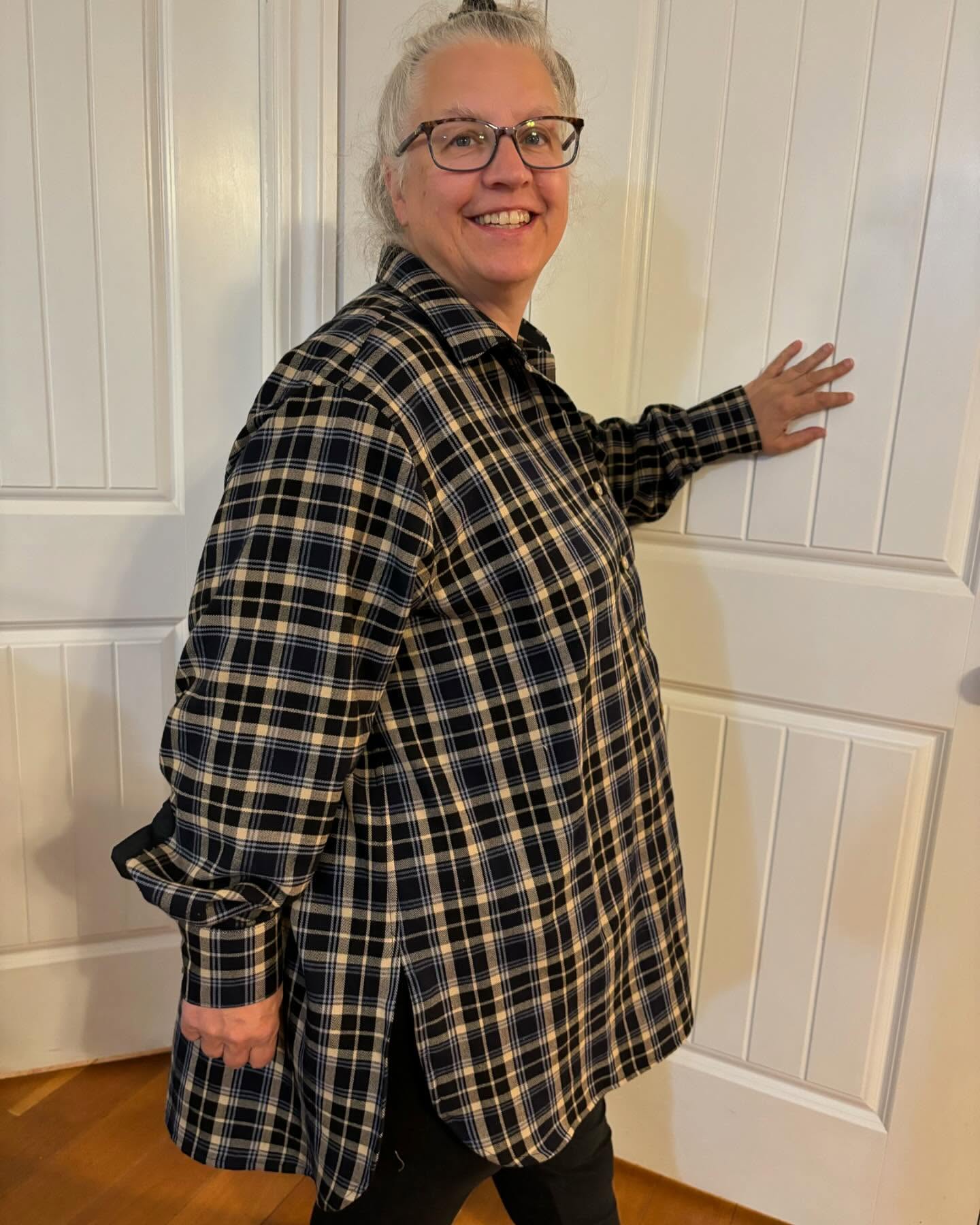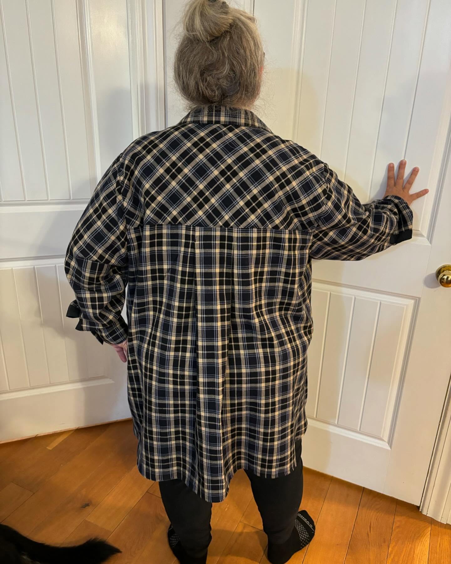 This is Jenna blouse from Closet Core Patterns. Made from flannel from Zinck’s Fabrics in Earl, Pennsylvania. I bought a bolt for $3.99 a yard. I lengthened the pattern 2 inches. It is 1x on top and sleeve, graded to 3x at waist and hips. It is so comfortable. It is a wonderful make with clear instructions and some great details. I am planning several more. I highly recommend this pattern. #closetcorejenna #zincksfabricoutlet