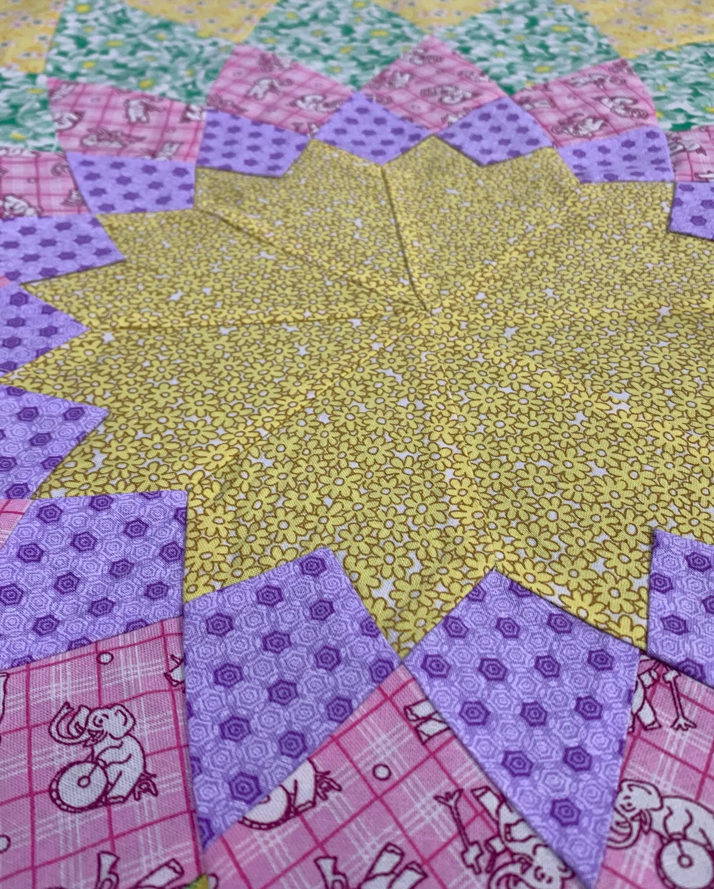 Another quilt top finished ⦠full/ queen size in 1930âs prints⦠I think I might have Easter colors on my mind. Now to sandwich and quilt. The top is laying so flat. This quilt is for a sweet lady. Marti Michellâs Giant Dahlia templates. Hoping to finish soon! Stay tuned. #quilttop #1930sfabric #martimichelltemplates