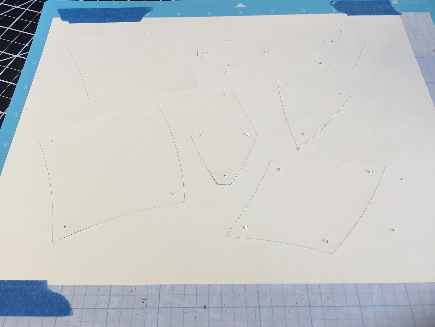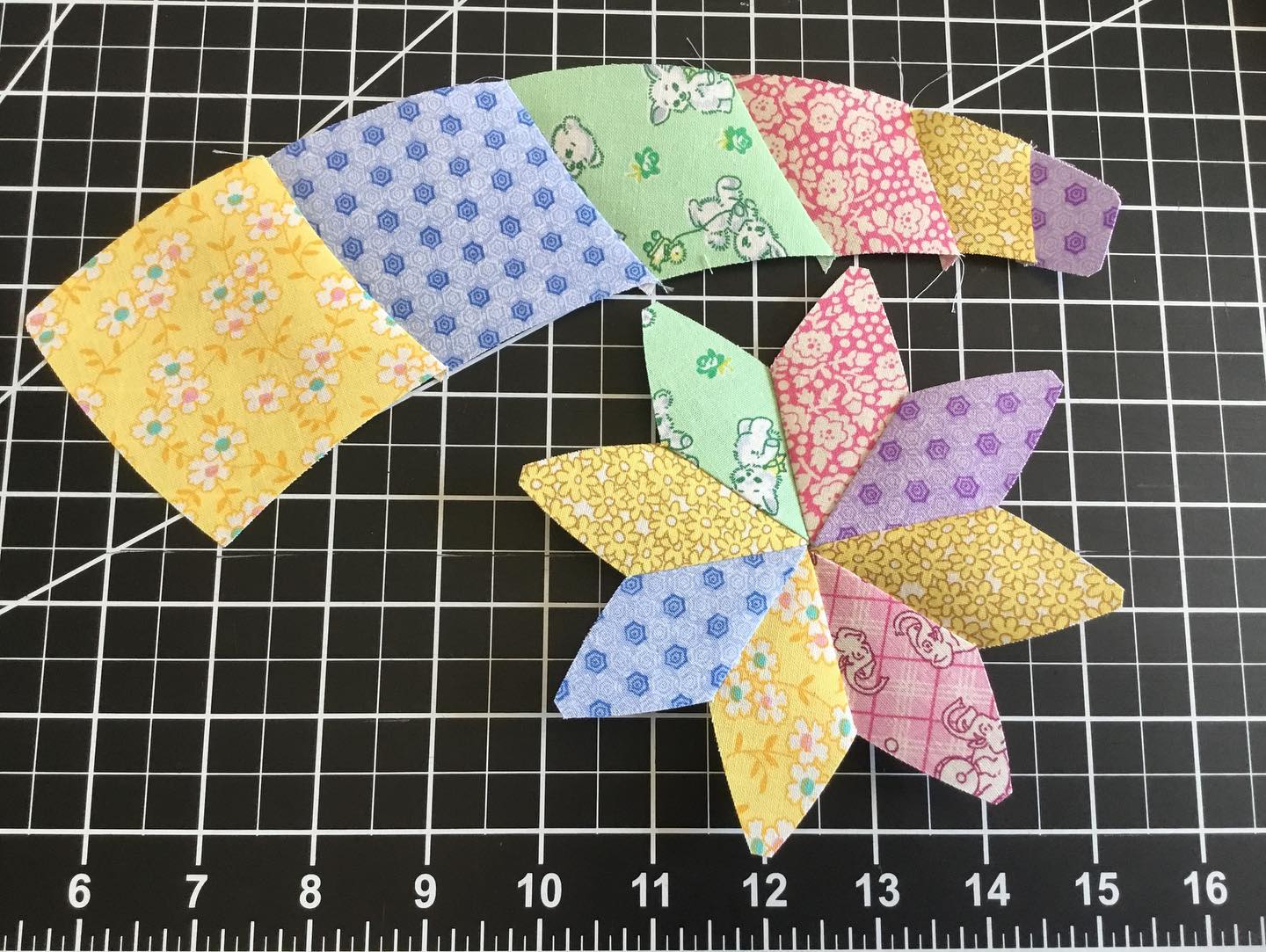 Mini Dahlia – Started with Marti Michellâs Not So Giant Templates which results in 36â Dahlia. I needed a 21â inch Dahlia. I traced templates and scanned them. Using Bernina software I digitized them. Using the outline function, I removed the quarter inch seam allowance. I reduced the size by 60%. I added small holes at corners to help with alignment. I added the quarter inch seam allowance back on, and eliminated the stitch line. I then exported an SVG file for my Silhouette Cameo cutting machine, which cut out card stock templates. I taped templates together to check the holes all lined up. When everything looked good, I created the same SVG cut file but without the holes, and used this to cut my fabric using the cutting machine. The card stock templates can be used to mark intersections on the fabric pieces to aid alignment. I then started sewing them together. Slight curve sewing cab be a bit tricky. I also starched my fabrics heavily before starting. There is so much you can do, to save time and money and work. A photocopier for reducing the size and a quarter inch ruler can be used instead of software with more hands on work. Anyway, having fun and thought I would share⦠The seeds of this projectâs techniques started in Teri Hallâs latest retreat on cutting. No affiliation just a very happy follower. #2manylizards #dahliaquilt #silhoettecameo #berninasoftware