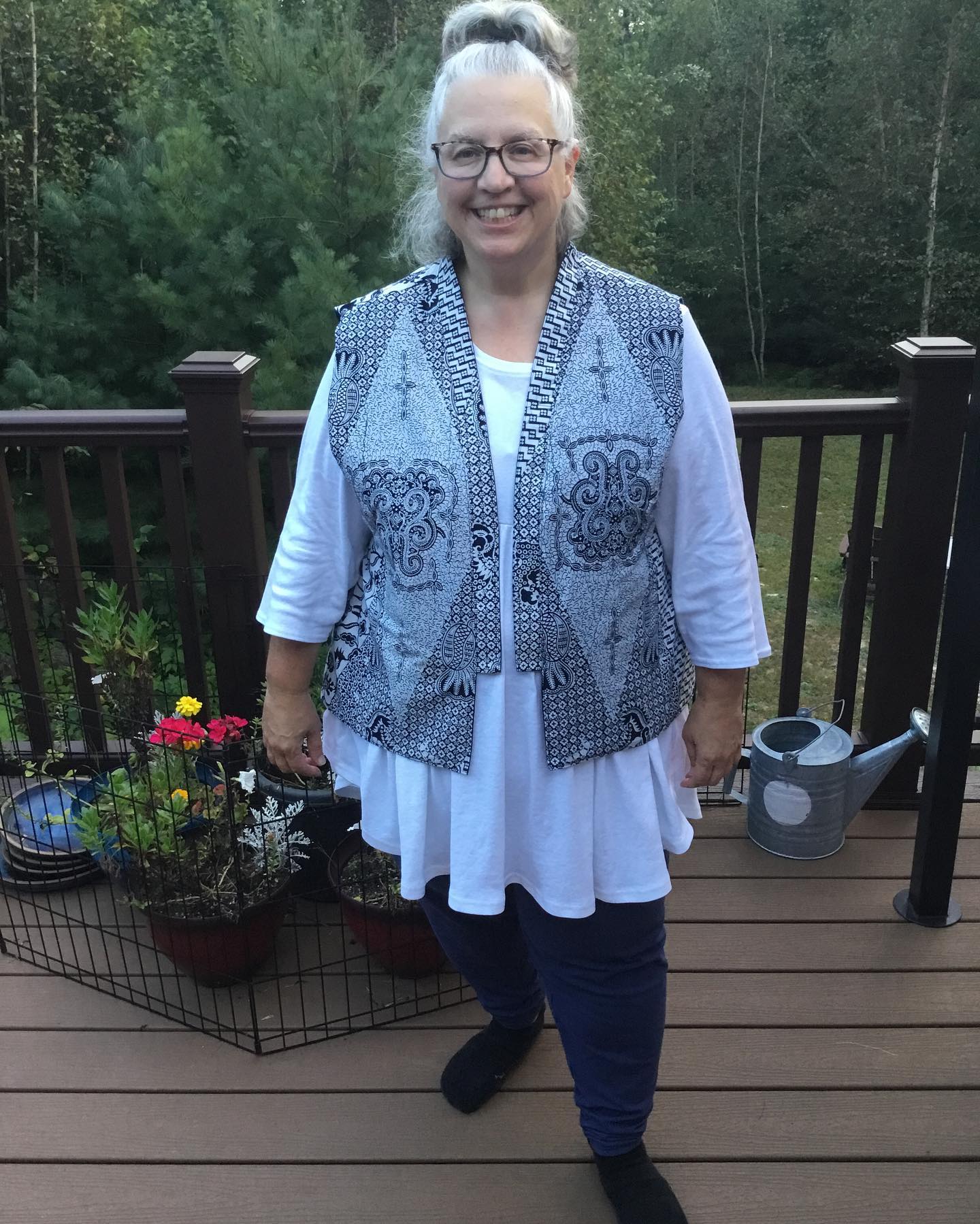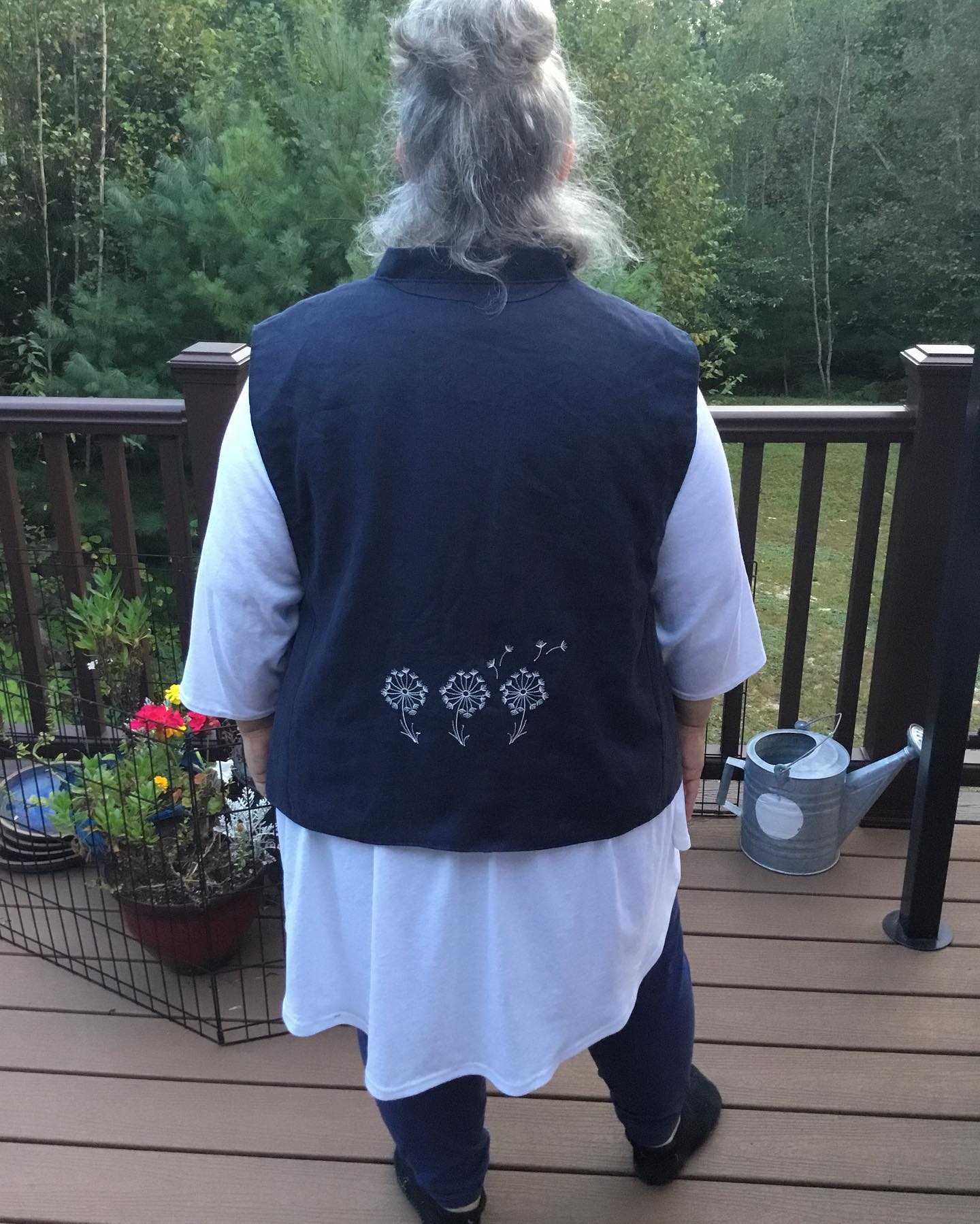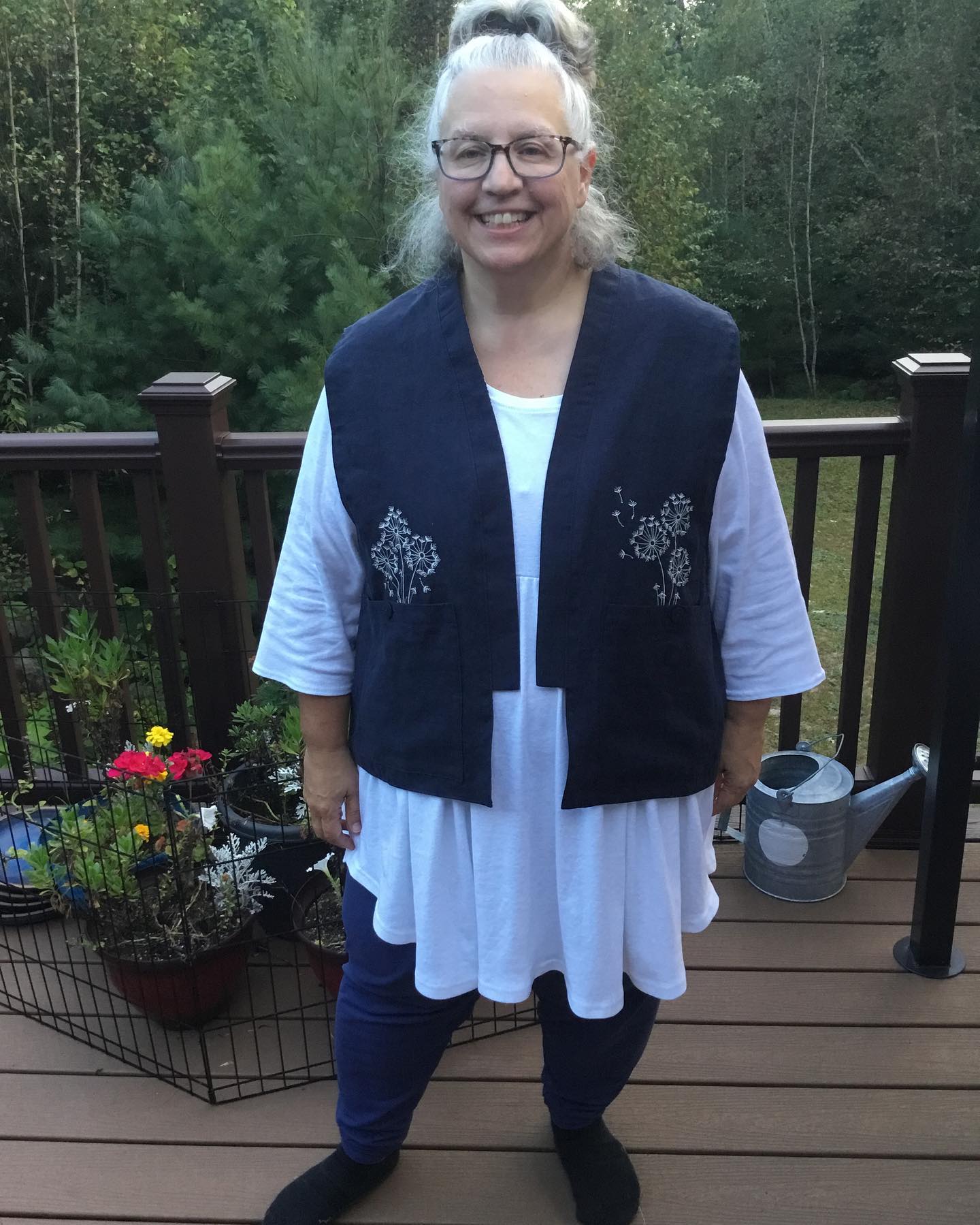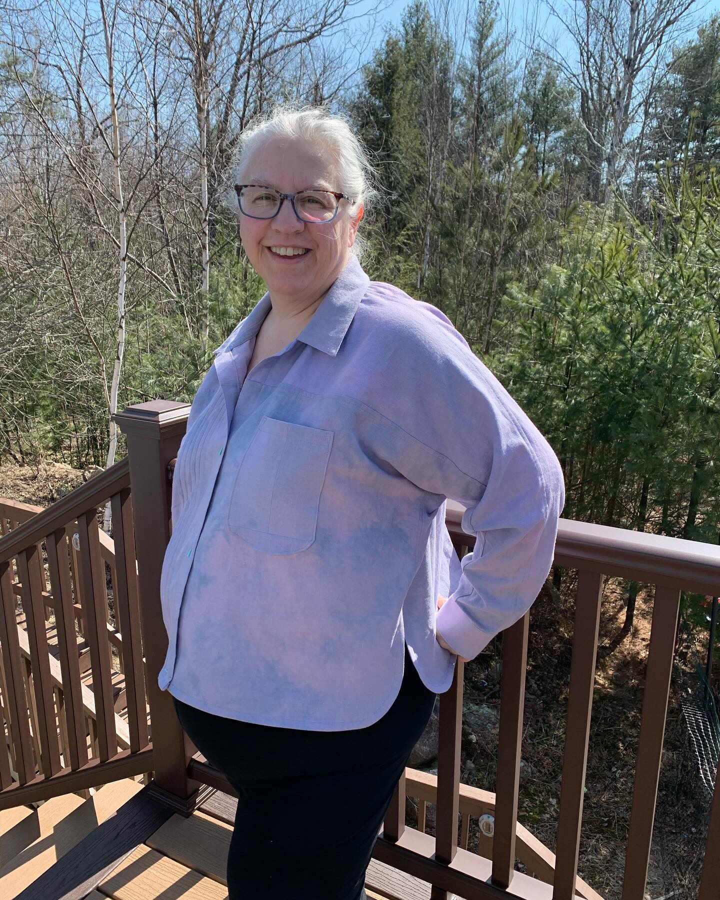 My make is made with a lightweight slightly shiny denim tencel. The fabric was a bit slippery and tended to fray, which added a bit of challenge. The flat piping is cut on cross grain which with this fabric tends to make it seem like a slightly a different color. I chose to do a front slit. The button placket is wonderful. The pockets are amazing. The flat piping in the seams adds a bit of structure to this flowy fabric, making the skirt skim over the body, and move wonderfully. The construction was straight forward and I would rate it for an intermediate sewist. If you are looking to dig into a bit of a challenge and need a wardrobe staple, this pattern could be for you. This is a straight size O. I am 5’4″ so it is a bit longer than intended.