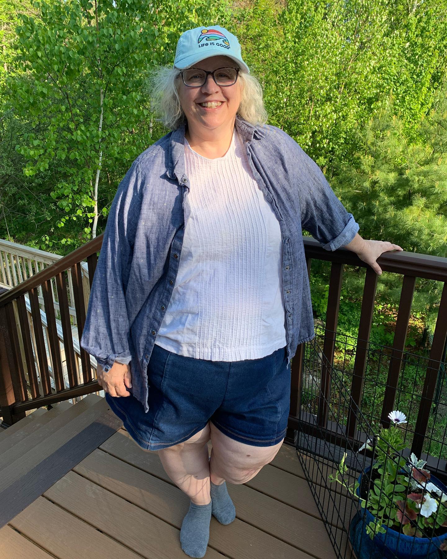 #MeMadeMay2023 is coming to a close. This outfit is my most favorite, happy place, and second skin outfit. Self drafted in a lovely soft lightweight cotton chambray. I managed to save it for the last day as a reward for completing Me Made May. I have discovered two things from participating in my first Me Made May. One, I have me mades that are orphans without coordinating pieces. Two, I have way too many fancy dress clothes that I really do not need or use. This has been such a great exercise in consciousness about my wardrobe. It will change how I approach sewing in the future. Thanks for all the likes, encouragement, and kind words along the way.