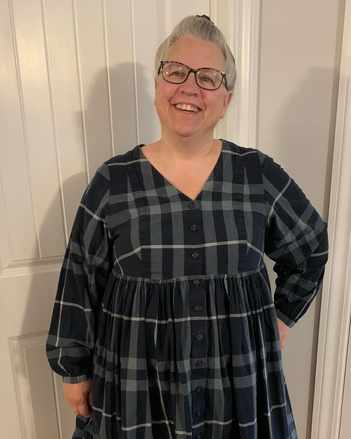 #MeMadeMay2023 In a favorite self drafted dress. Super fine cotton shirting. Love it. Perfect for a full day sewing class with a favorite teacher. So much fun and inspiration.