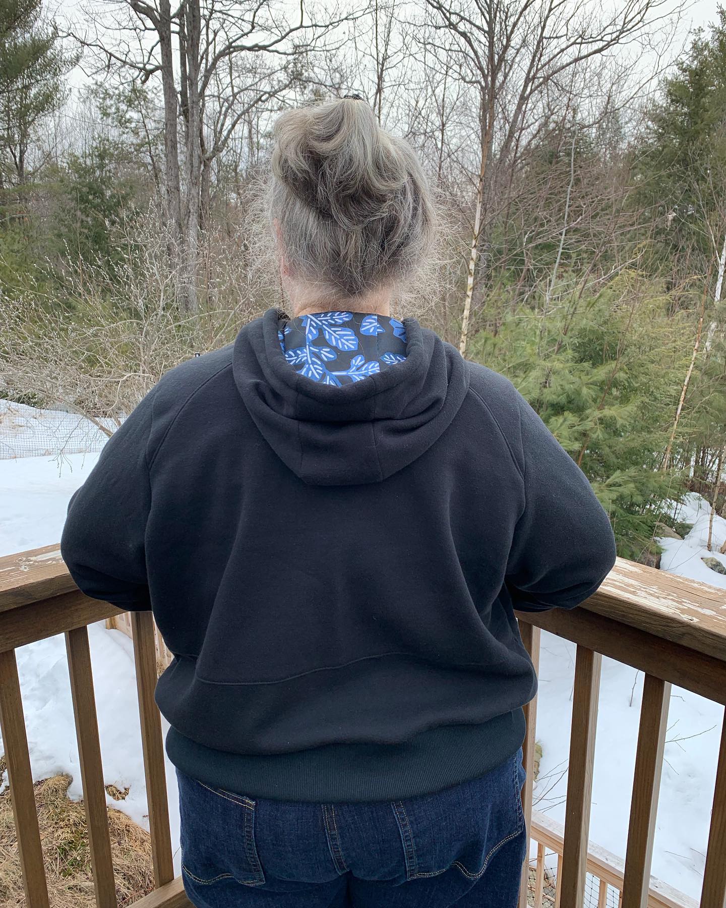Just finished this Cashmerette Stanton Hoodie. Took a Zoom class with Sarah Joiner through Pintuck and Purl shop. Graded size 20 chest, 28 waist, 30 hips, and 26 full bicep sleeve. A bit tricky to grade, but I have super comfy hoodie which fits but I am not drowning in it. Sweatshirt fleece with cotton spandex scraps for lining. OESD embroidery from their Sashiko Reflections collection. #cashmerettestanton #pintuckandpurl #oesdembroidery #sewover50plus #curvysewingcollective