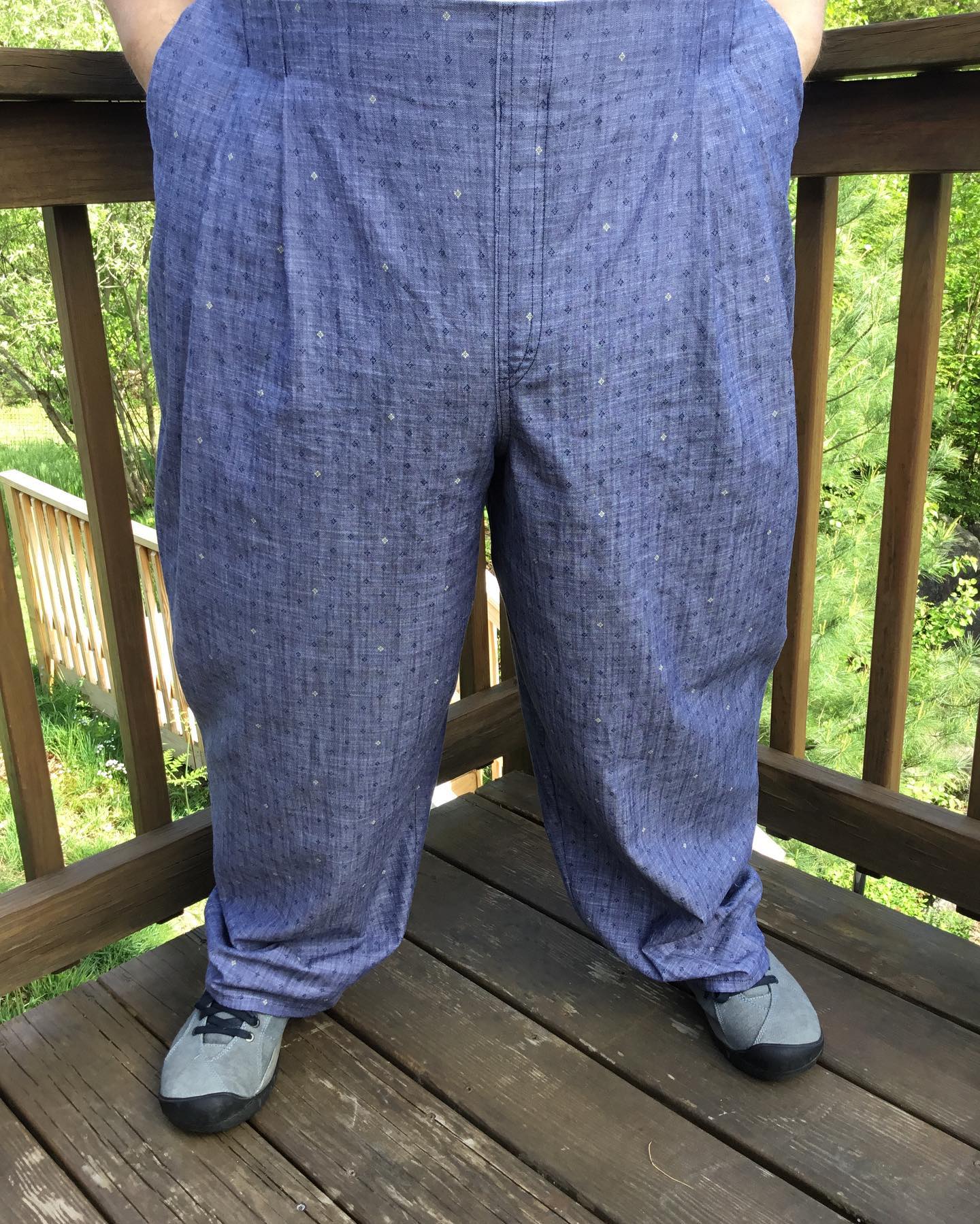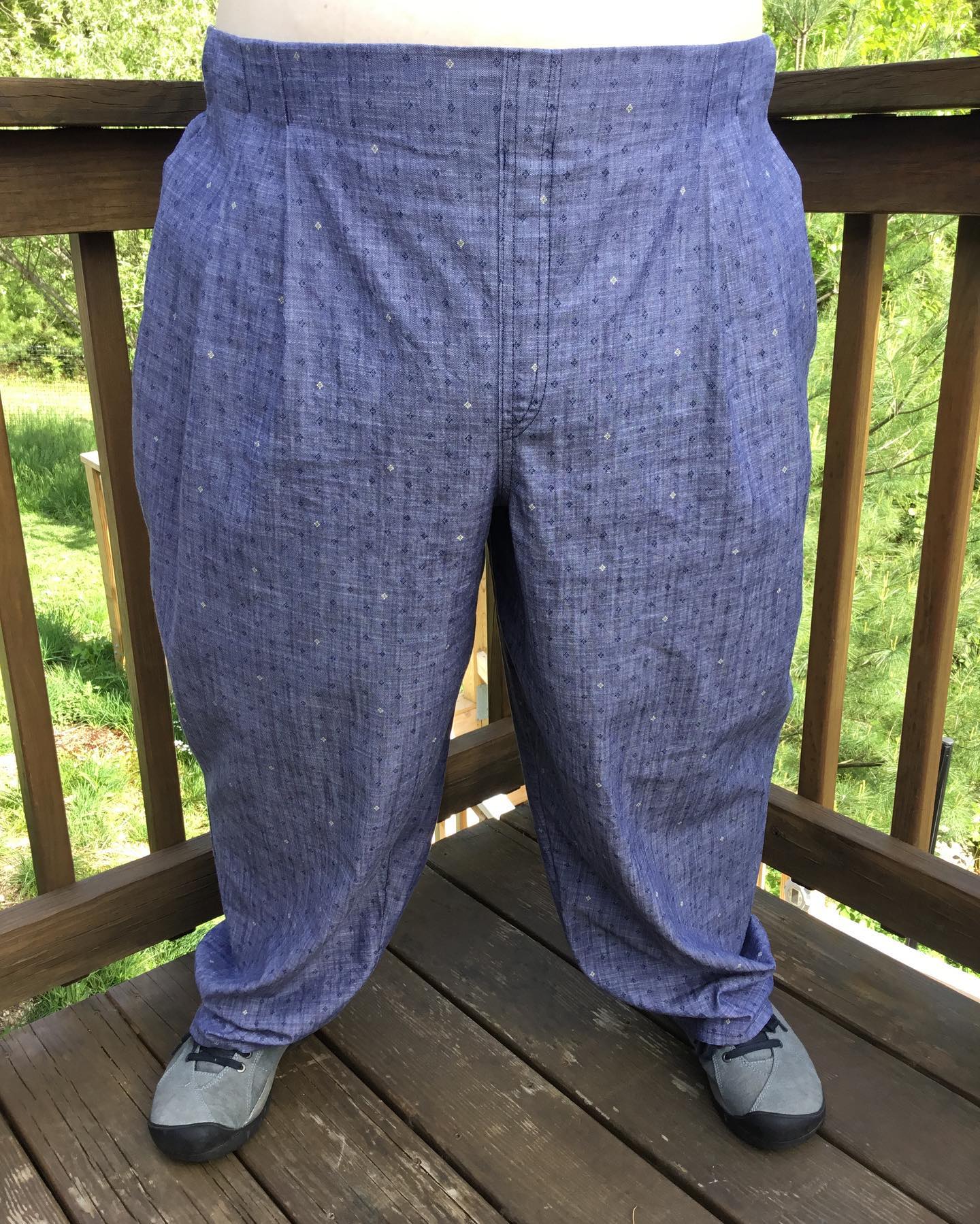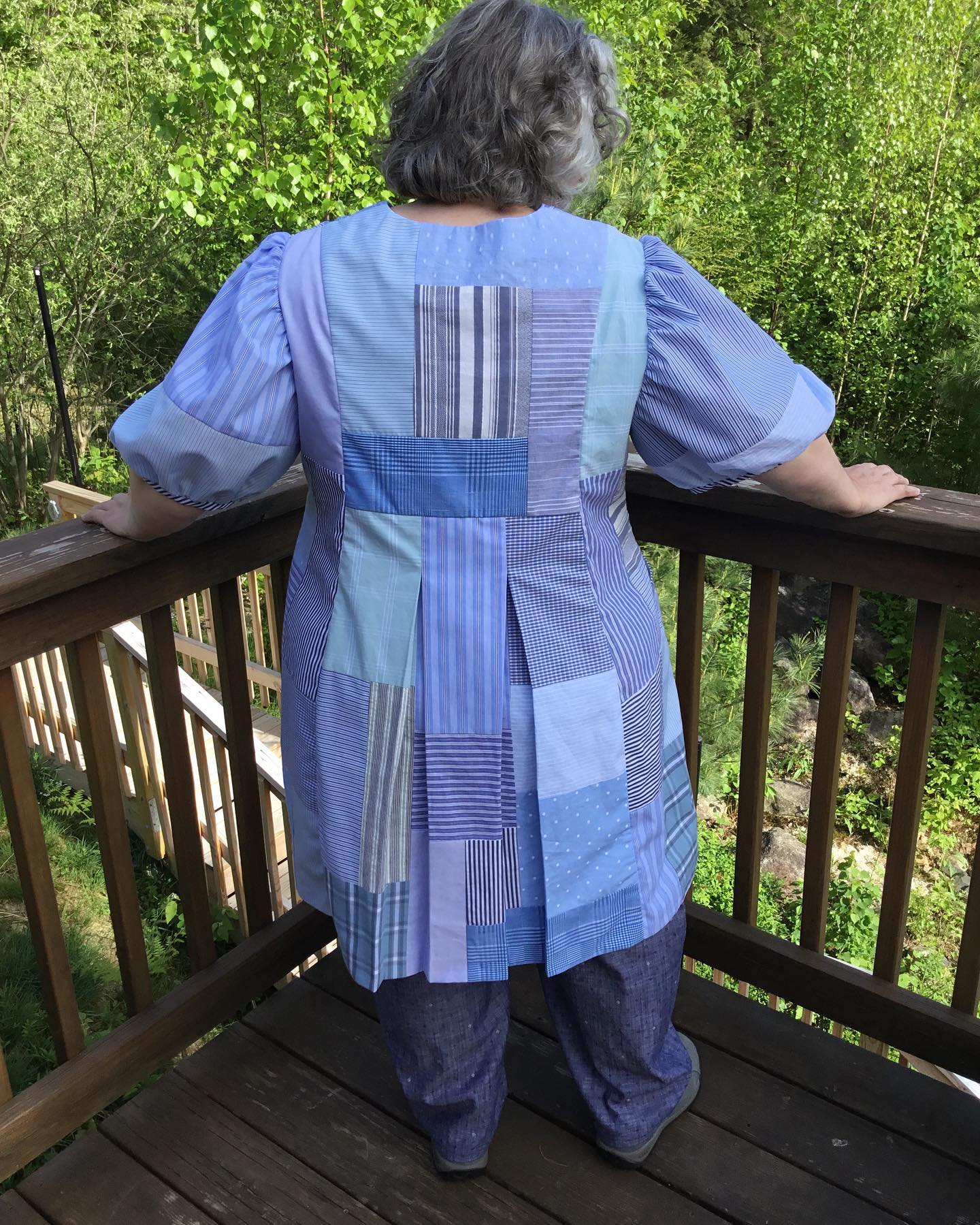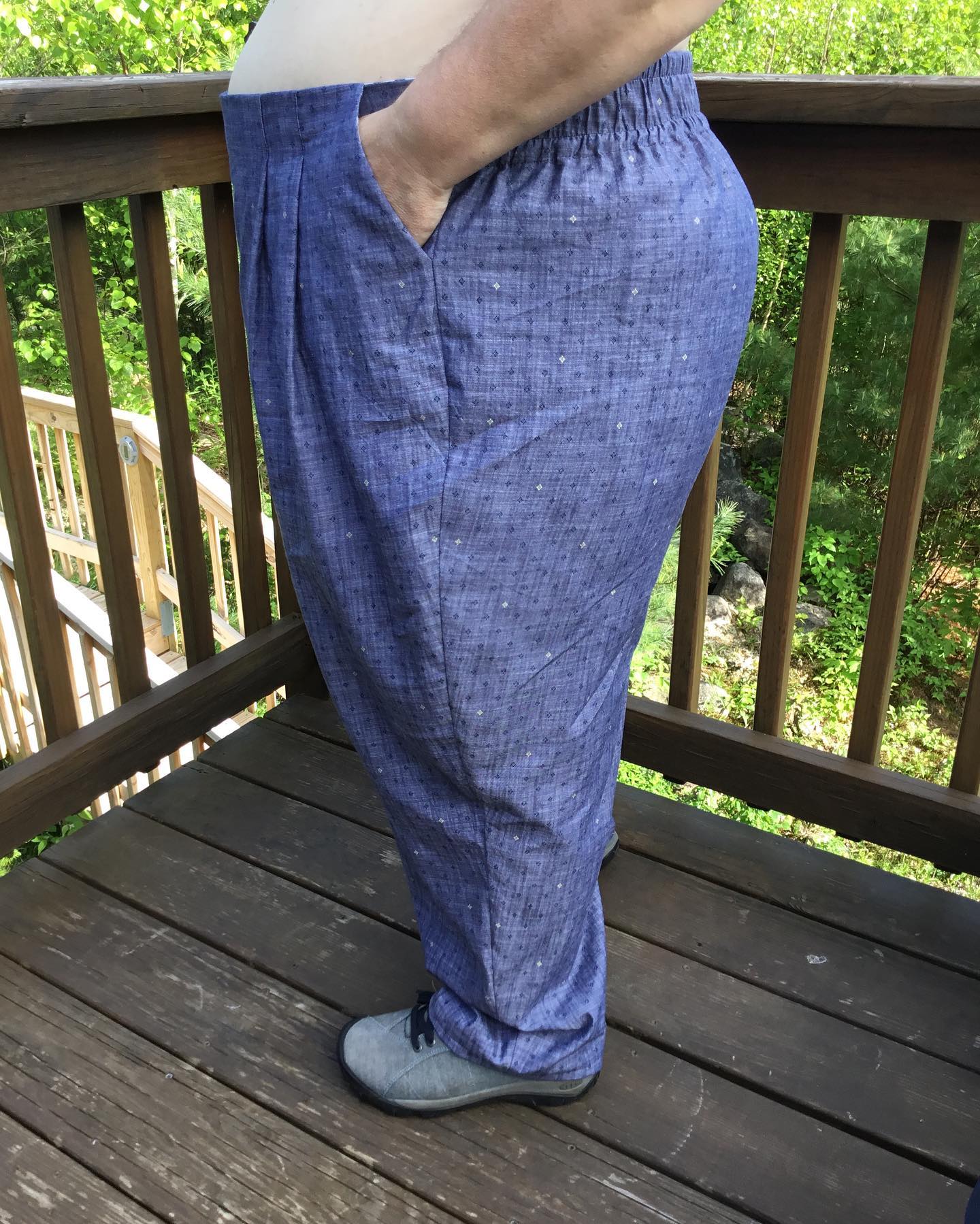 My latest makes, made almost entirely of cotton fabrics. A few blends may have been used. Hacked version of Itch to Stitch dress with sleeves from Anthea blouse from Anna Allen (not extended sizing). The pants are Chandler pants from Untitled Thoughts. Pleated front, faux fly, elastic back waistband. Highly recommend. Needed minor alterations. My measurements are Chest 46.5 C cup, 48 waist, 59 hips. #sewover50plus #chandlerpants #celestedress #pfnatural