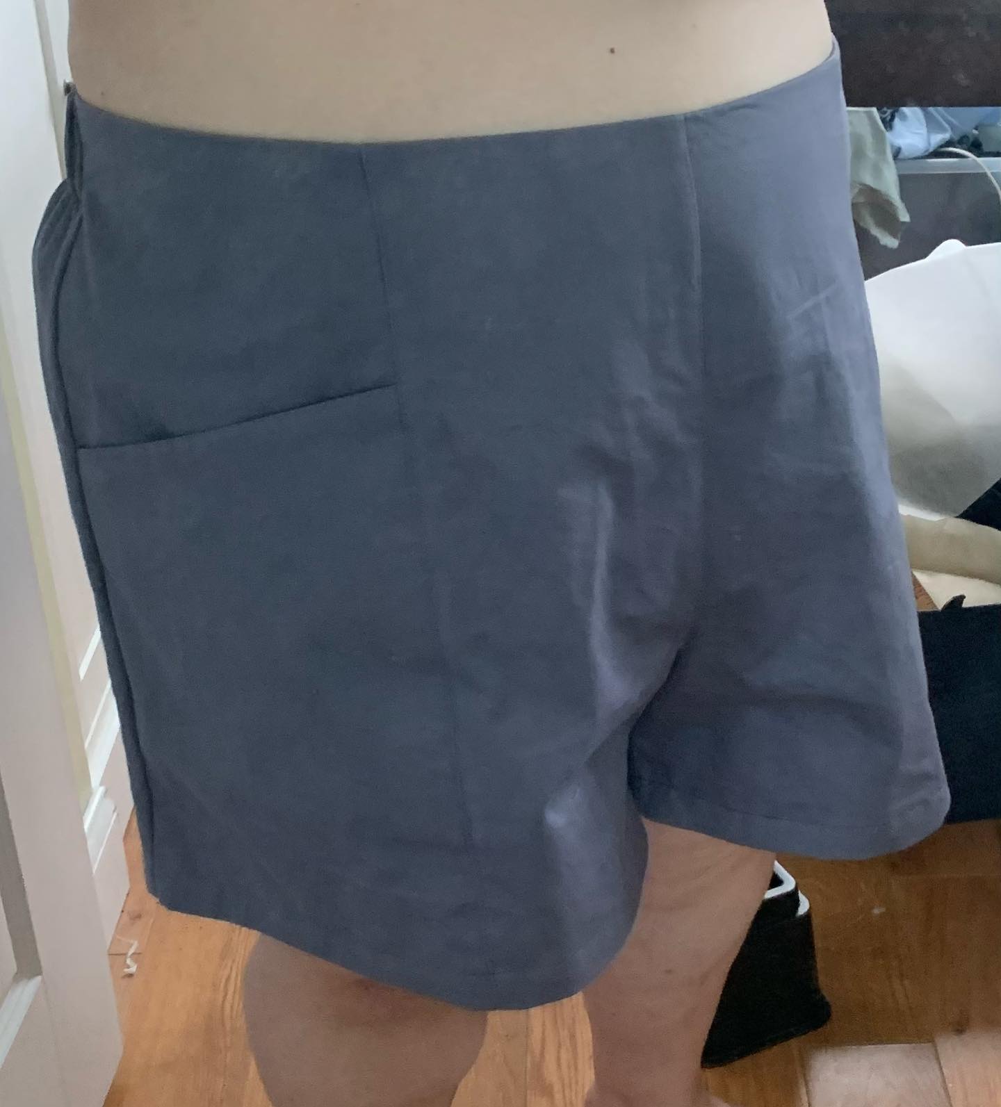 Third pair of pietra shorts. I have spent most of this hot humid summer in these and I absolutely love them. I found an odd shaped piece if this twill while organizing, and was able to squeeze a pair out of it. Waist 49â hips 59 inches. #pietrapants #pfsewyourstash #sewover50plus