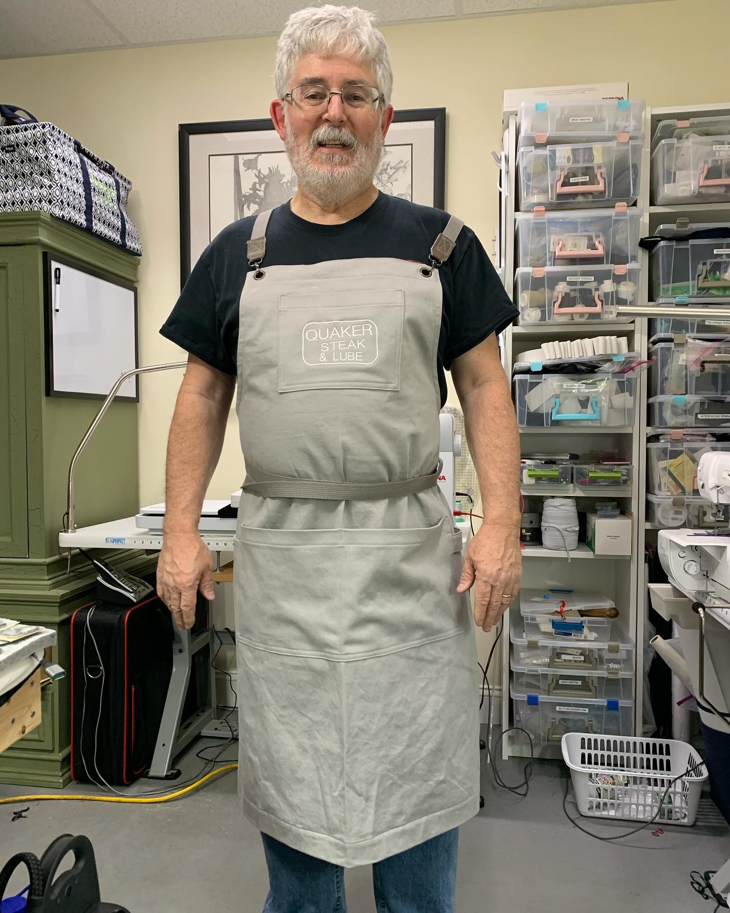 Made a couple of Helenâs Closetâs Sam Aprons as Christmas gifts. It is free pattern with email address and great instructions with one exception, the bias needed to be cut 2â wide. Added some fun embroidery to personalize them. Used a medium to heavy cotton twill. Lots of hardware or hardware free options. Even used some leather scraps to up the finish. Great fast fun functional gifts. #helensclosetsamapron #pfjoyful #punkfrockers