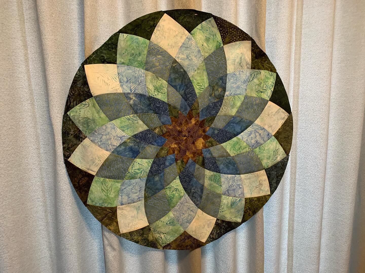 My very first attempt at a Dahlia quilt pattern. I bought these templates 12 years ago, and held on to them even after giving up quilting for 10 years. By Marti Mitchell, the ânot so Giant Dahliaâ templates. Used batiks, color choices could be improved. Starching the fabric made piecing much easier. But overall, excited to keep trying. #dahliaquilt #scrappyquilt #punkfrockers #sewover50february