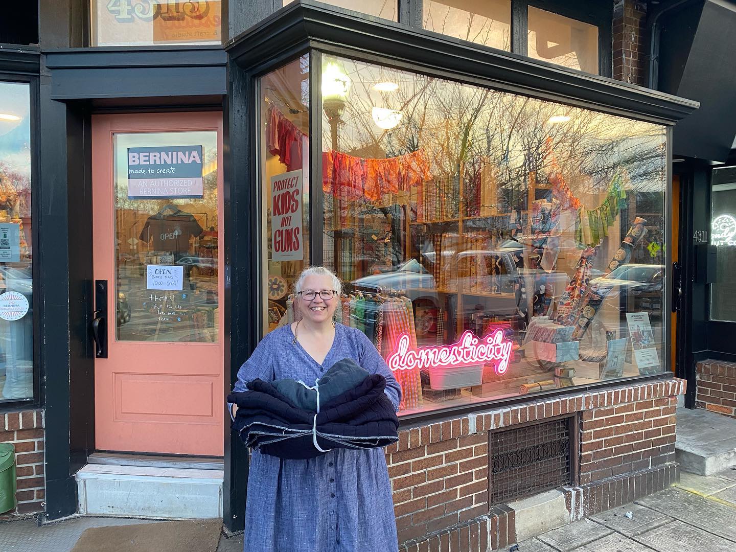 Just had my first visit to Domesticity in Baltimore. I am holding my first pieces of Merchant and Mills fabric. I am so excited. Beautiful fabric shop! Thanks to Jenny and Beverly for the recommendation. #punkfrockers #johassler #weedstowildflowers