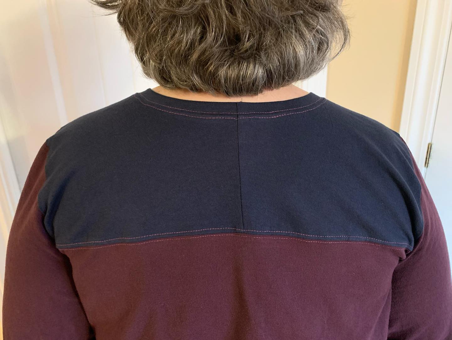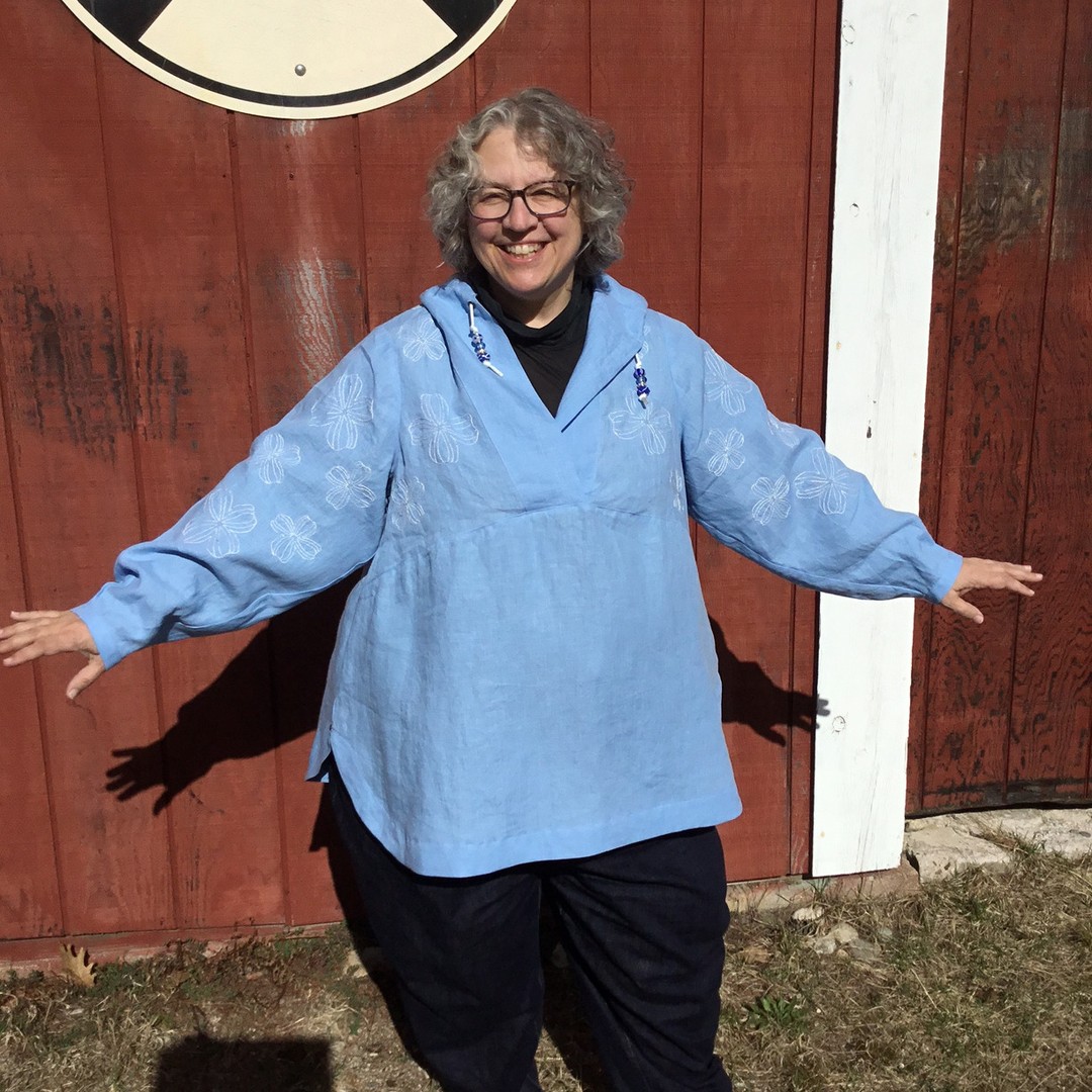 Just finished this Tulpen Top. A new pattern from Stokx Patterns. Made in a drapey lightweight woven for front, and the back and sleeves are a knit. Dressy looking with casual comfort. I never cared for boat necklines due to bra straps showing, but this design offers coverage. Very comfortable as it just skims over the body. Can be sewn on machine. I did use my overlocker and cover stitch machines but they are not necessary. Very Size inclusive. I made a size 7 on top and graded to a size 11 on hips. My measurements are 46 chest, 48 waist, and 56 hips. I also added some length to make it a long sleeve. I did receive a free copy of test pattern, with no obligation.
