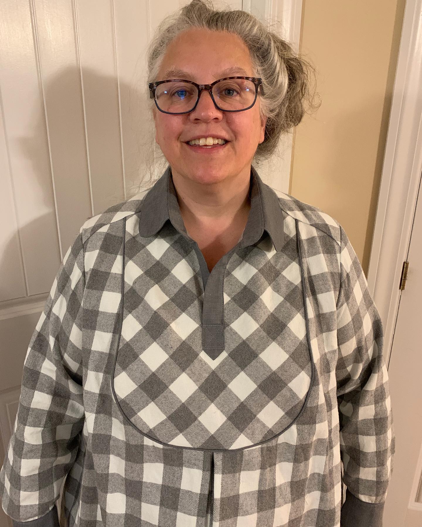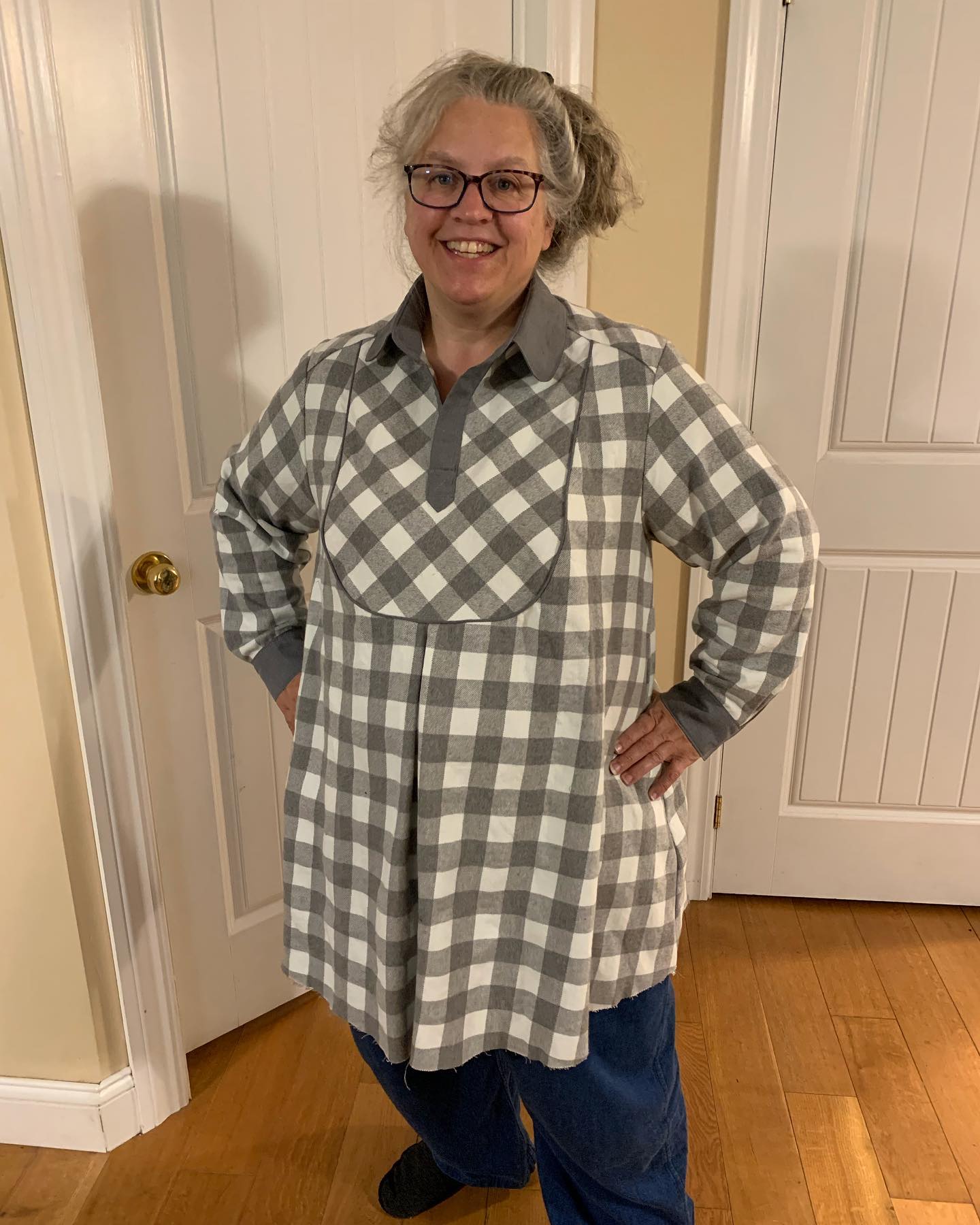 My latest make, first cold weather make of the season. Self drafted pattern, developed with the help of David Page Coffin several years ago. Added piping, replaced full button placket with partial. Joanne Fabricâs Platitude flannel which is an excellent thick and comfy flannel, but narrow width, especially after wash and dry.