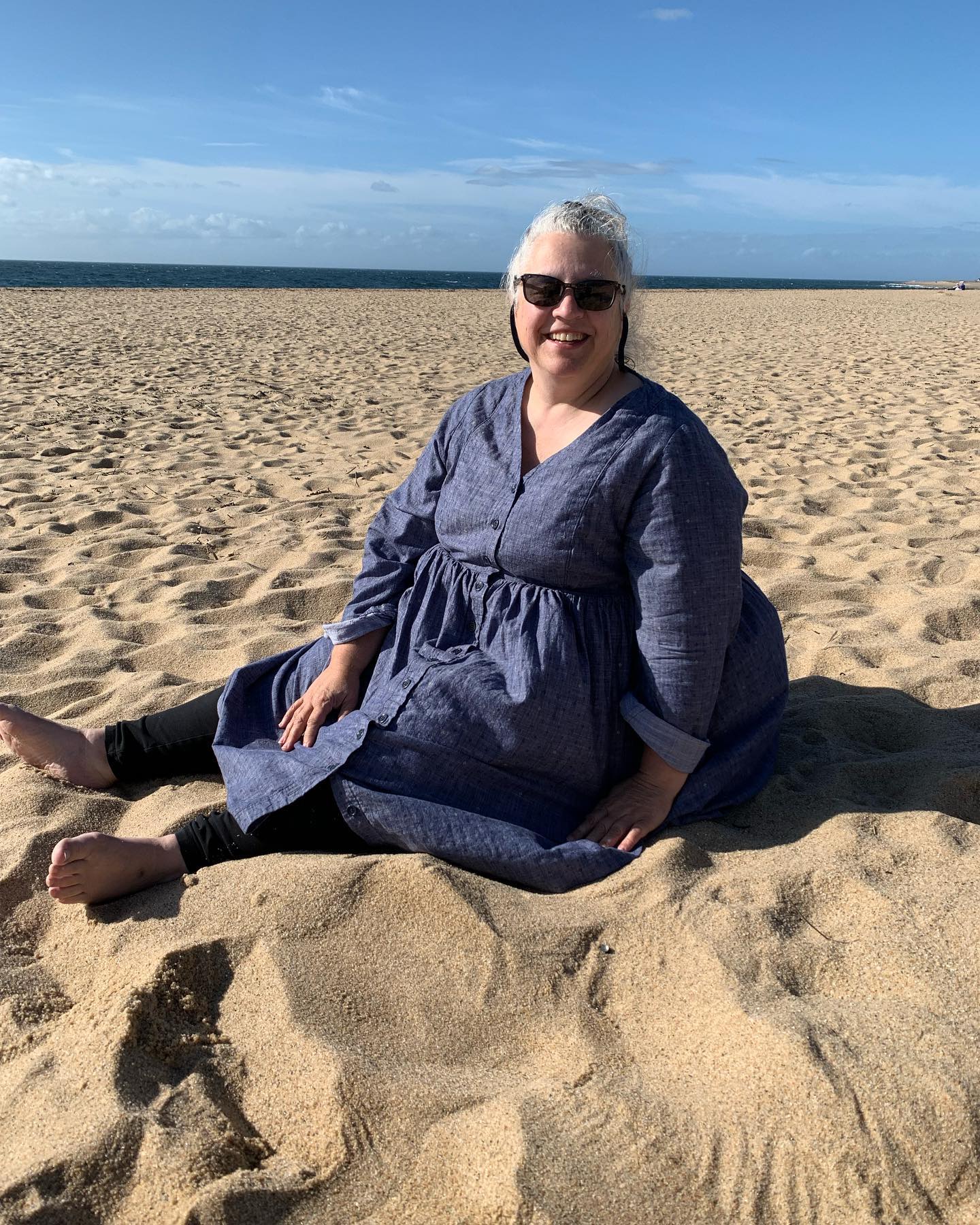 Another bonus day in November. Walked on beach and even dipped my toes. #munaandbroad #noicejeans Self drafted tee shirt and Noice jeans! #sewover50plus Sitting on a self drafted button up. Living life in me mades!