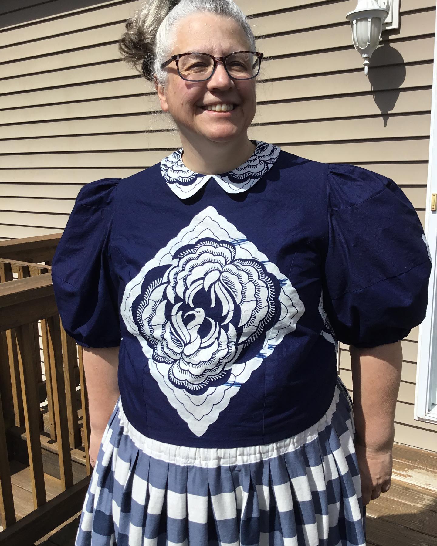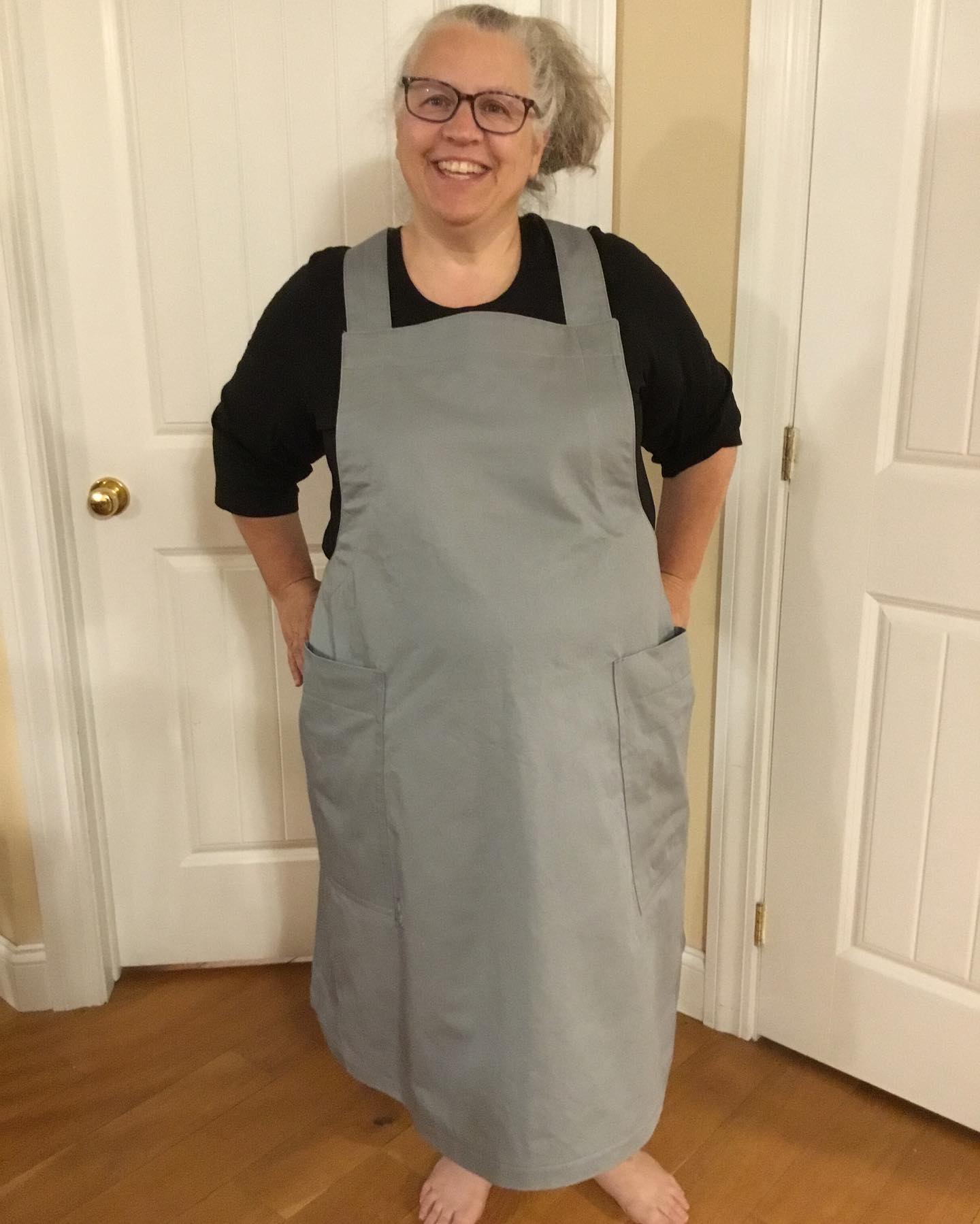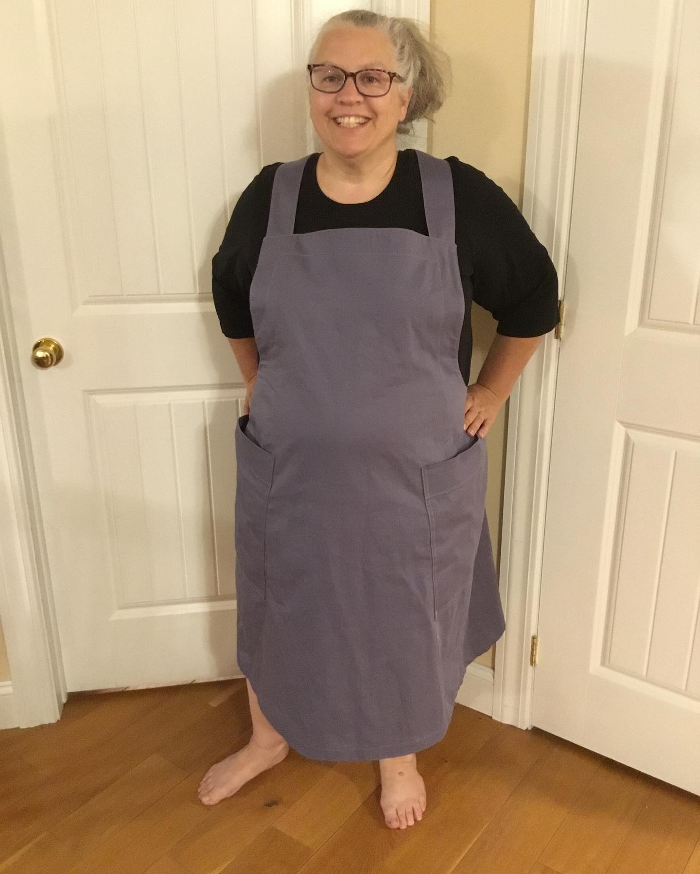 P.S. Cut my Covid hair. I have been growing out my hair since lockdown, and decided it was time. Back to shabby chic! And I cannot take a photo without my dog these days, she insists. #sewover50plus