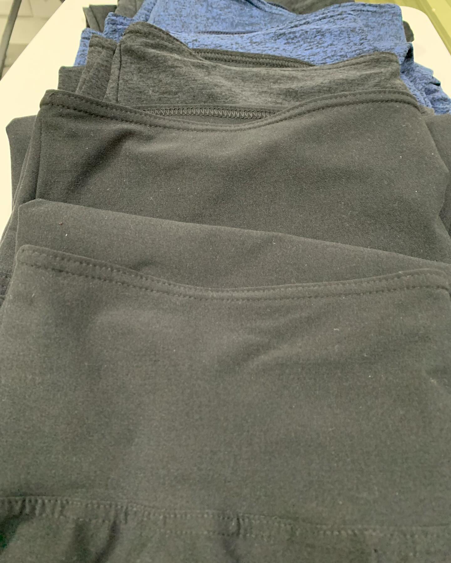 Self care! I am still not a fan of batch sewing BUT 6 pairs of leggings for myself. As of today I am getting rid of all my remaining ready to wear leggings. Just no comparison. Comfort contour waistband and no side seams all for under 1.5 yards of Amandaâs Bundles peached performance per pair. I am trying some mid weight for the first time but will probably stick with the regular slightly thicker peached performance. It is 87% polyester and 13% spandex. Breathable, moisture wicking and so comfortable. I live in these for 3 out of the 4 seasons. These are made using Apostrophe Patterns My Fit Leggings pattern generator. Sewn on serger and coverstitch machines. Added a little contrasting knit tag on inside to avoid the embarrassment of discovering my leggings are on inside out mid morning. Lol.