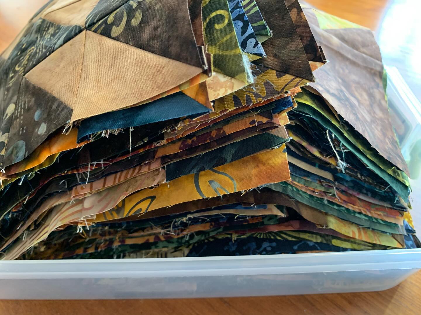 King size scrap quilt using batiks. Over 170 blocks done and ready for final assembly⦠my return to quilting after many years. Quilt pattern is Orionâs Star. Taking a break from garment sewingâ¦