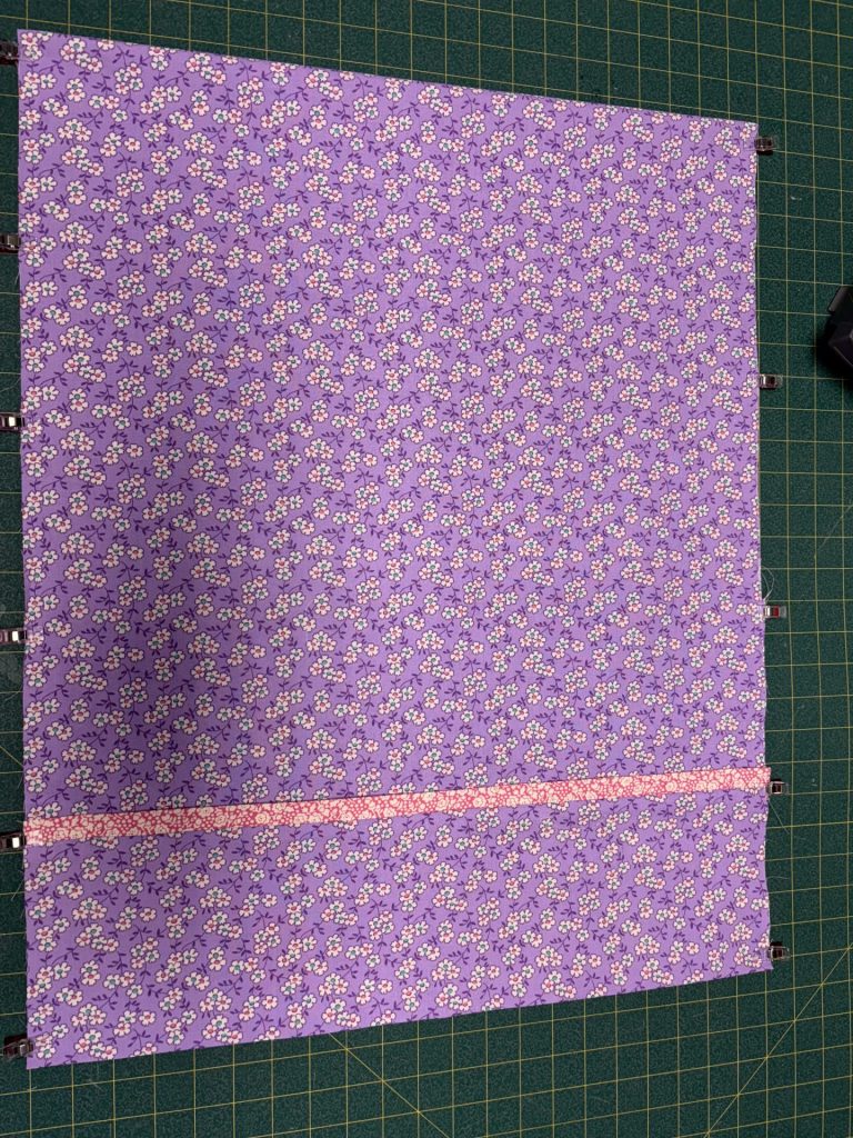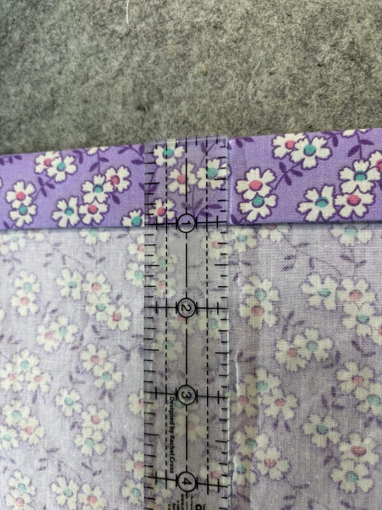 Press the 12 inch pieces in half with wrong sides together to form 6β x 21β pieces. Press the 2β pieces in half wrong sides together to form 1β x 21β pieces.